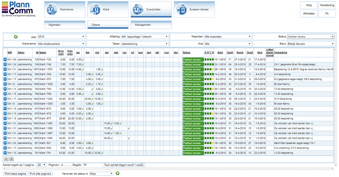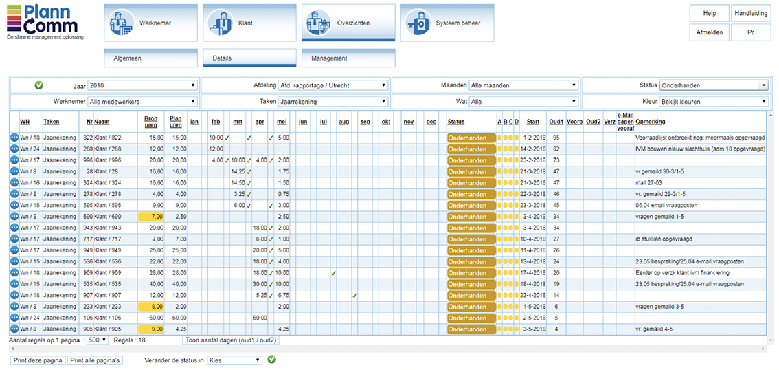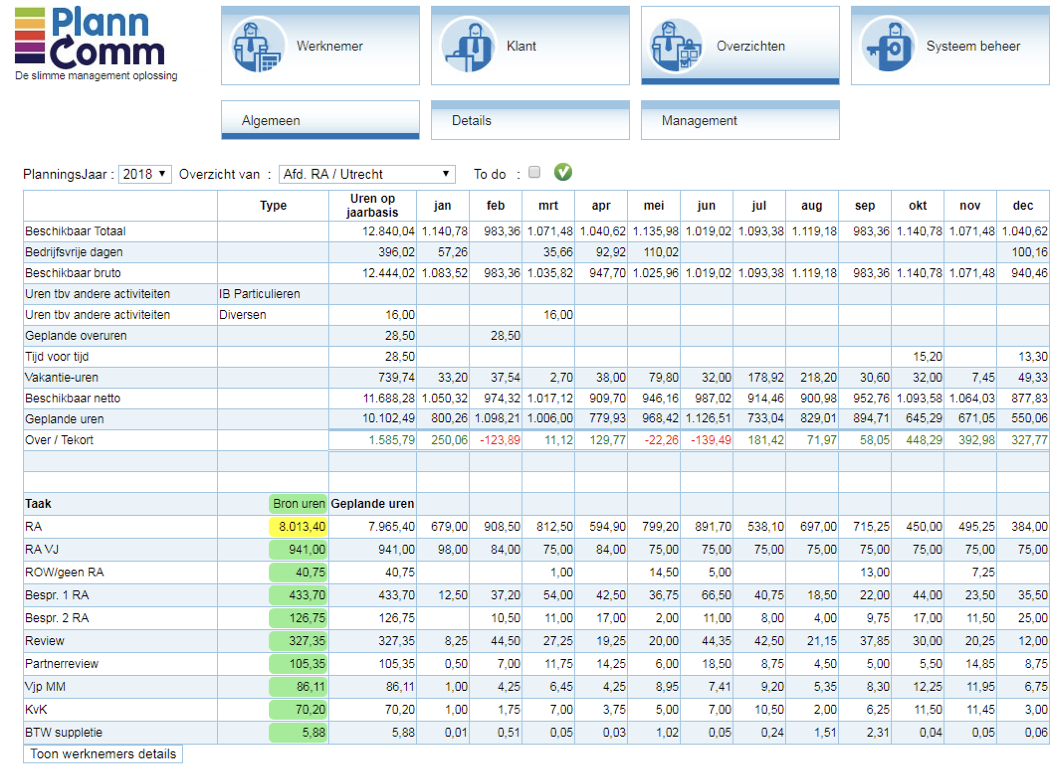 De afdeling rapportage van kantoor Utrecht heeft in de maanden april en mei te weinig uren beschikbaar ten opzichte van de geplande uren. Is het op te lossen met schuiven in de planning? Of kan een ander kantoor bijspringen.  Allemaal Informatie die u nodig heeft om uw werknemers optimaal te laten functioneren.