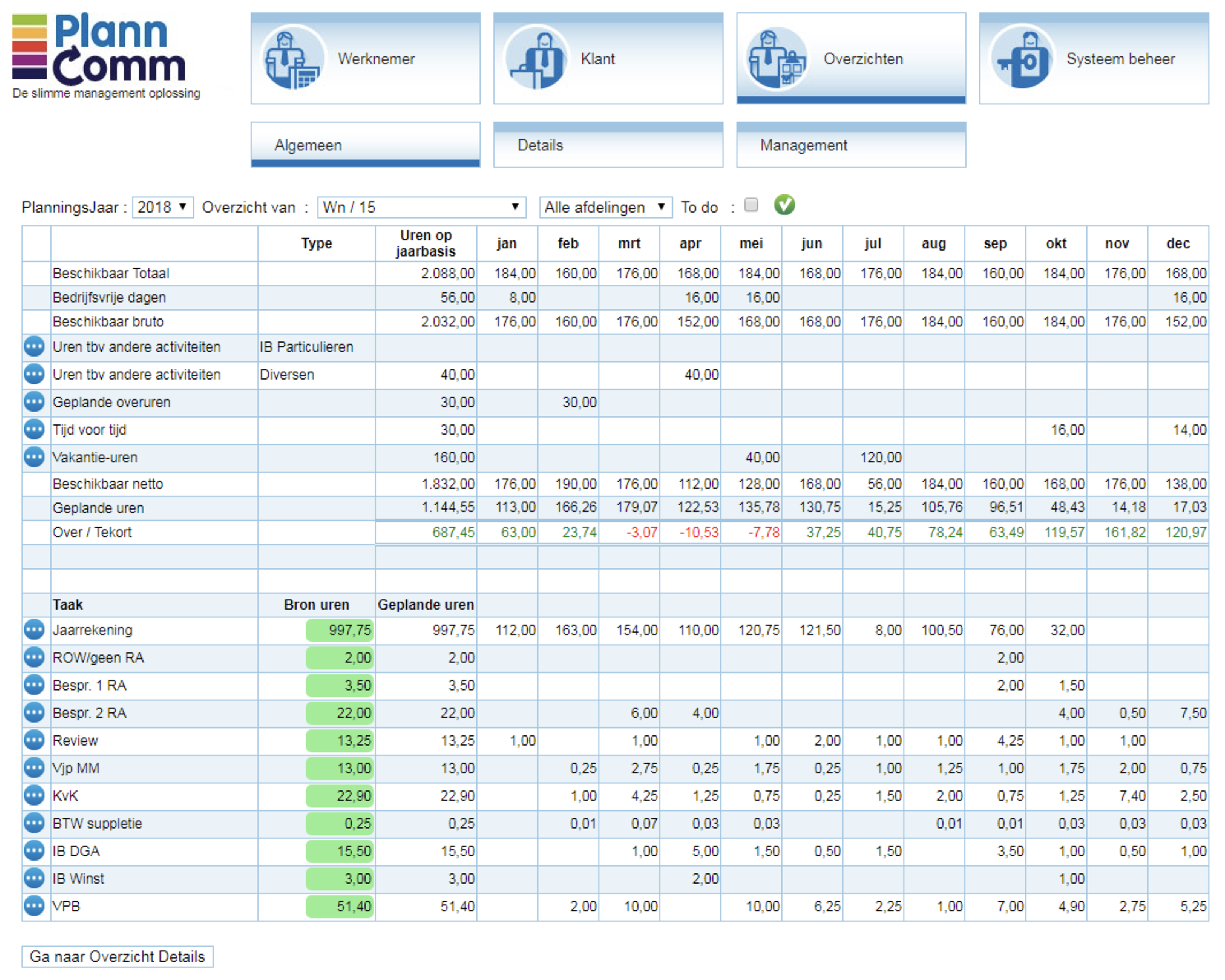 Maar u kunt ook zien hoe het overschot of tekort is samengesteld. Wie heeft tijd over in de planning en kan een collega helpen.
