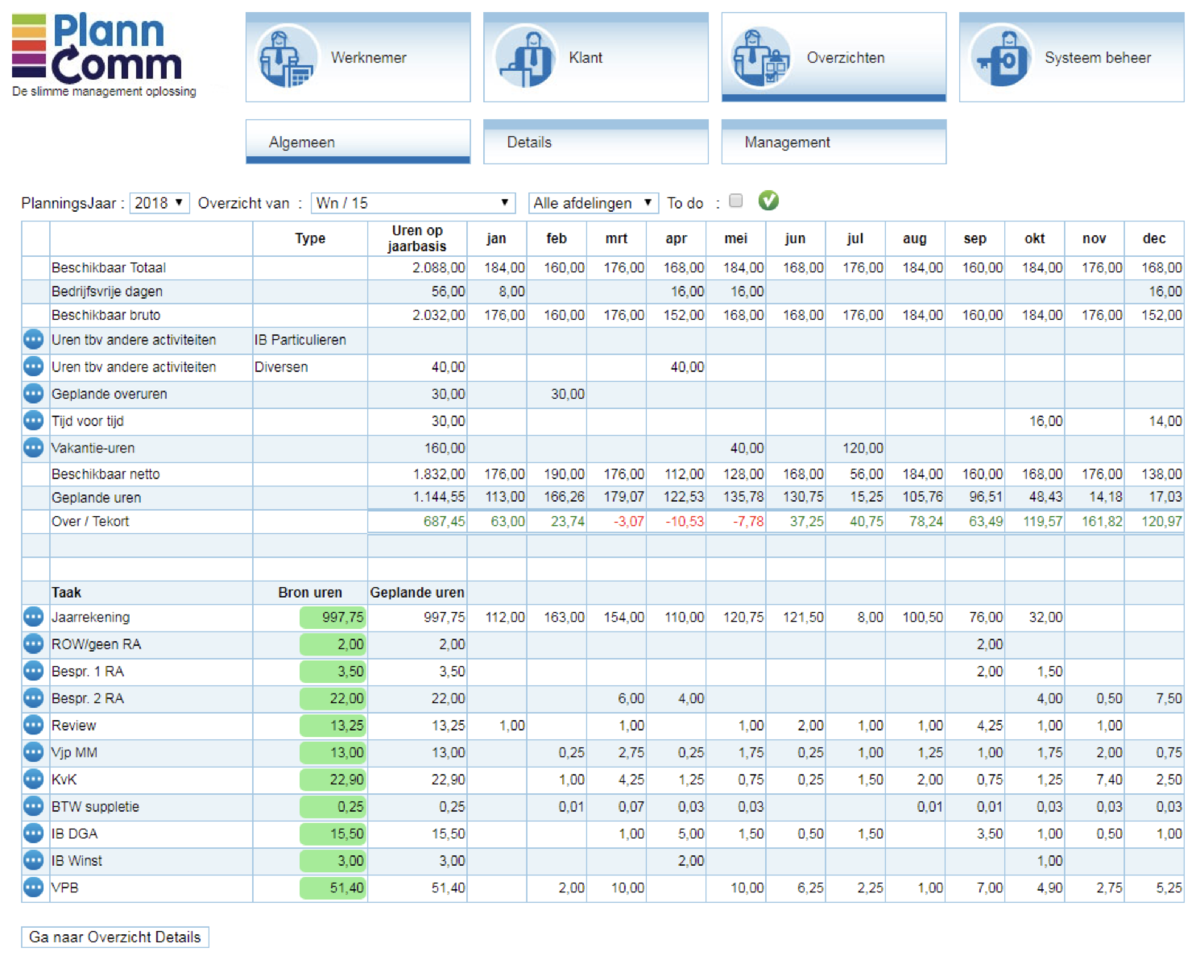 Maar u kunt ook zien hoe het overschot of tekort is samengesteld. Wie heeft tijd over in de planning en kan een collega helpen.